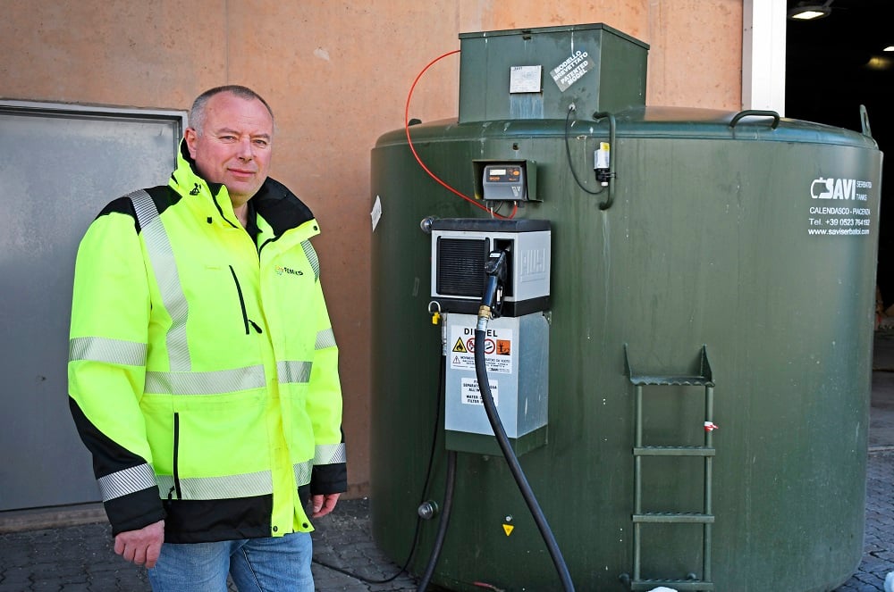 Transportkoordinator Frode Lorentsen ved Remiks sitt tankanlegg for HVO100-diesel.